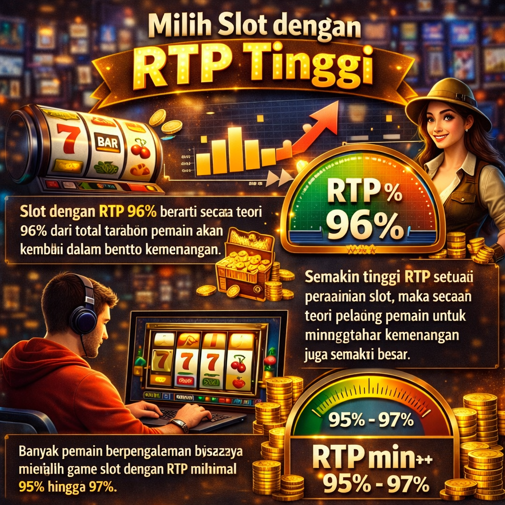 - Slot dengan RTP 96% berarti secara teori 96% dari total taruhan pemain akan kembali dalam bentuk kemenangan.