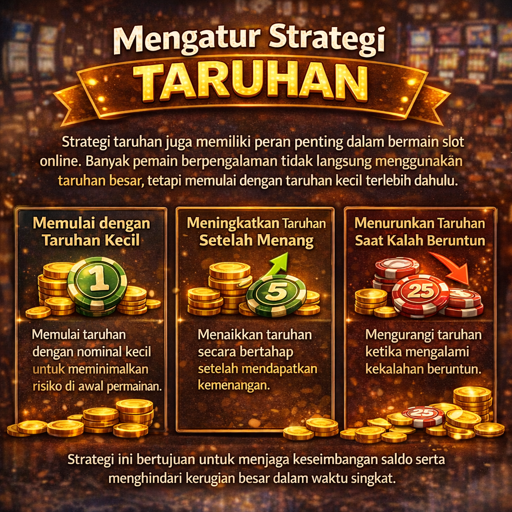 Strategi taruhan juga memiliki peran penting dalam bermain slot online. Banyak pemain berpengalaman tidak langsung menggunakan taruhan besar, tetapi memulai dengan taruhan kecil terlebih dahulu.